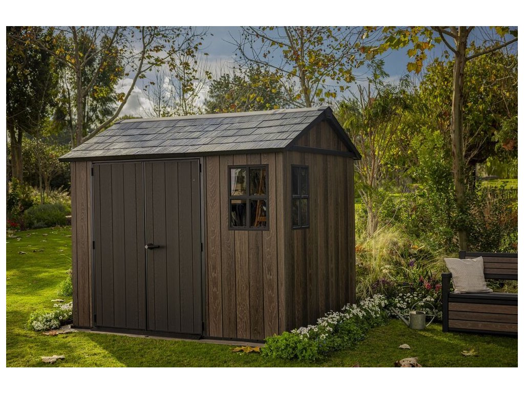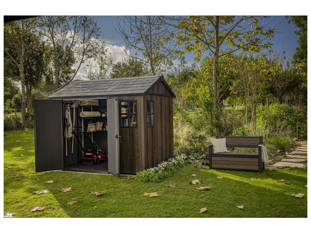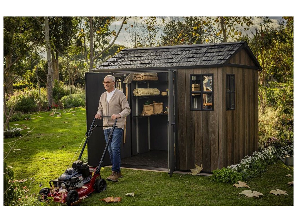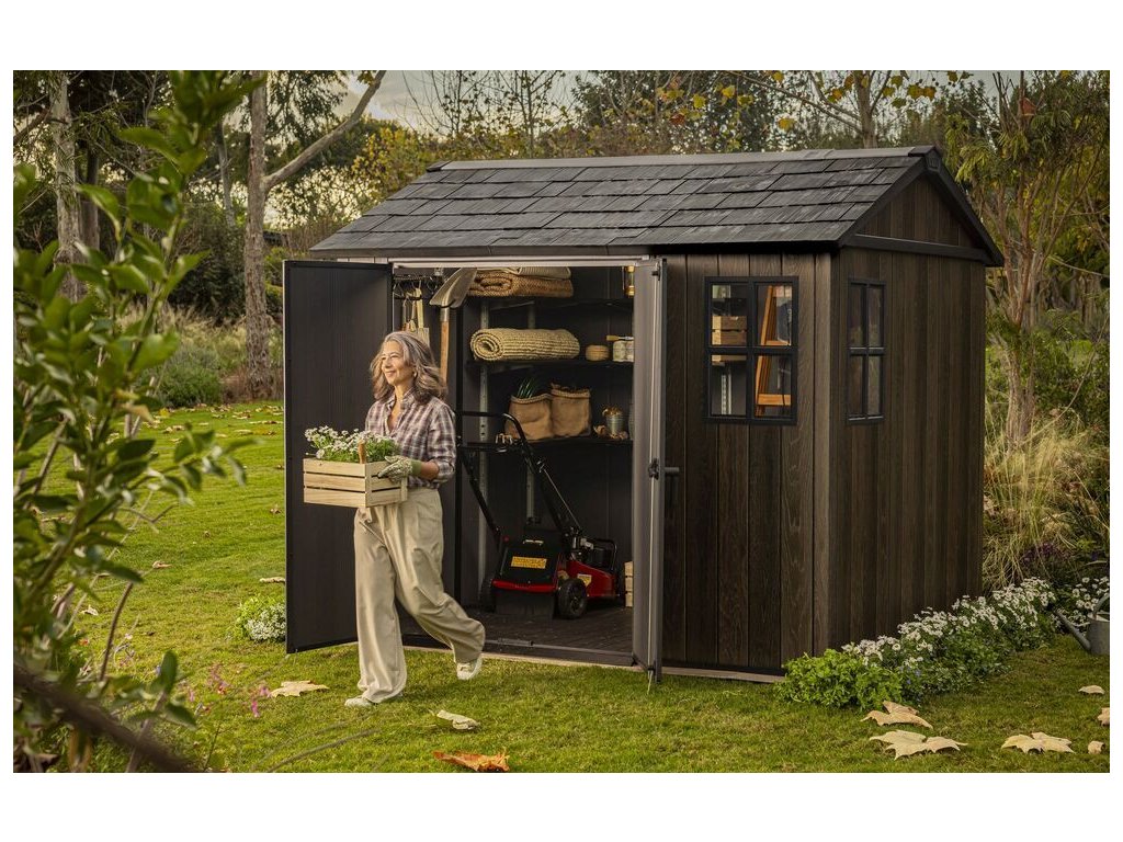S jeho dvojitými stěnami a možností flexibilního sestavení, APEX 9x7,5 se může přizpůsobit jakémukoli prostoru. Stejně tak umístění okna a dveří je možné uzpůsobit. Díky širokým dvojitým dveřím a pevné designové střeše se stává ideálním úkrytem pro širokou škálu zahradního náčiní, nábytku a sekaček. Jeho vysoce odolná podlaha, schopná unést až 150 kg na metr čtvereční, poskytuje spolehlivou základnu pro Vaše potřeby.
