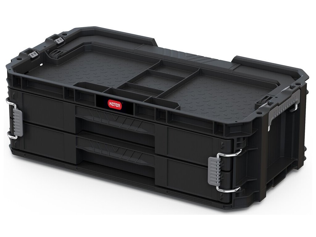 Connect se 2 zásuvkami udrží vaše nářadí vždy přehledné a uspořádané. Dvě výsuvné zásuvky pojmou ruční nářadí i drobné příslušenství, takže máte vše po ruce doma, v dílně i na cestách.