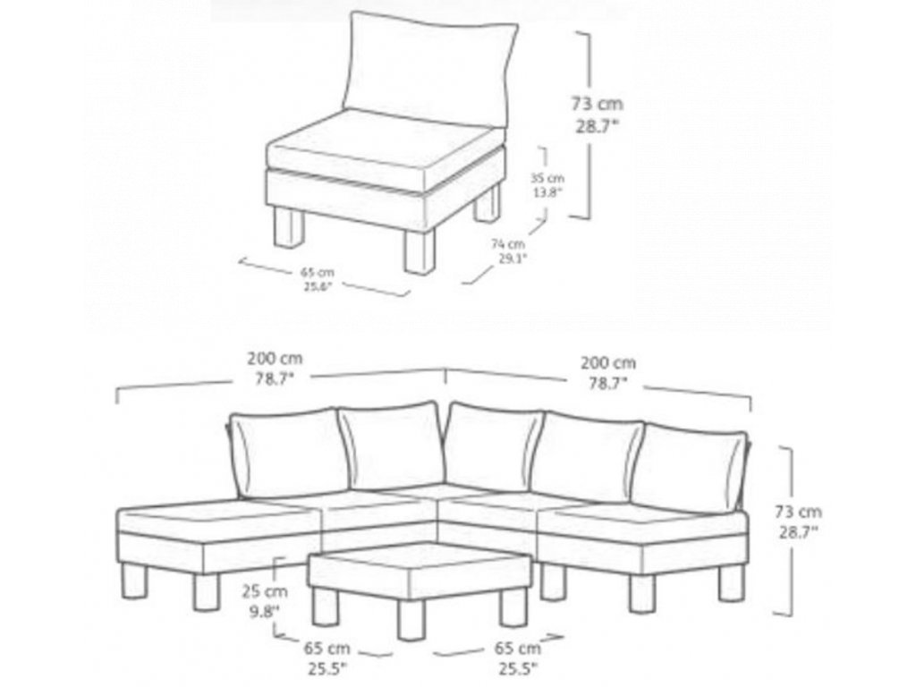 Pro ještě větší pohodlí jsou součástí soupravy 9 cm vysoké podušky a opěrky. Podušky jsou z příjemného materiálu polybavlna a spodní část je z netkané textílie s protiskluzovým tečkami. Pevný lisovaný plast, z kterého je souprava vyrobena, je odolný vůči nepříznivým povětrnostním podmínkám a UV záření.