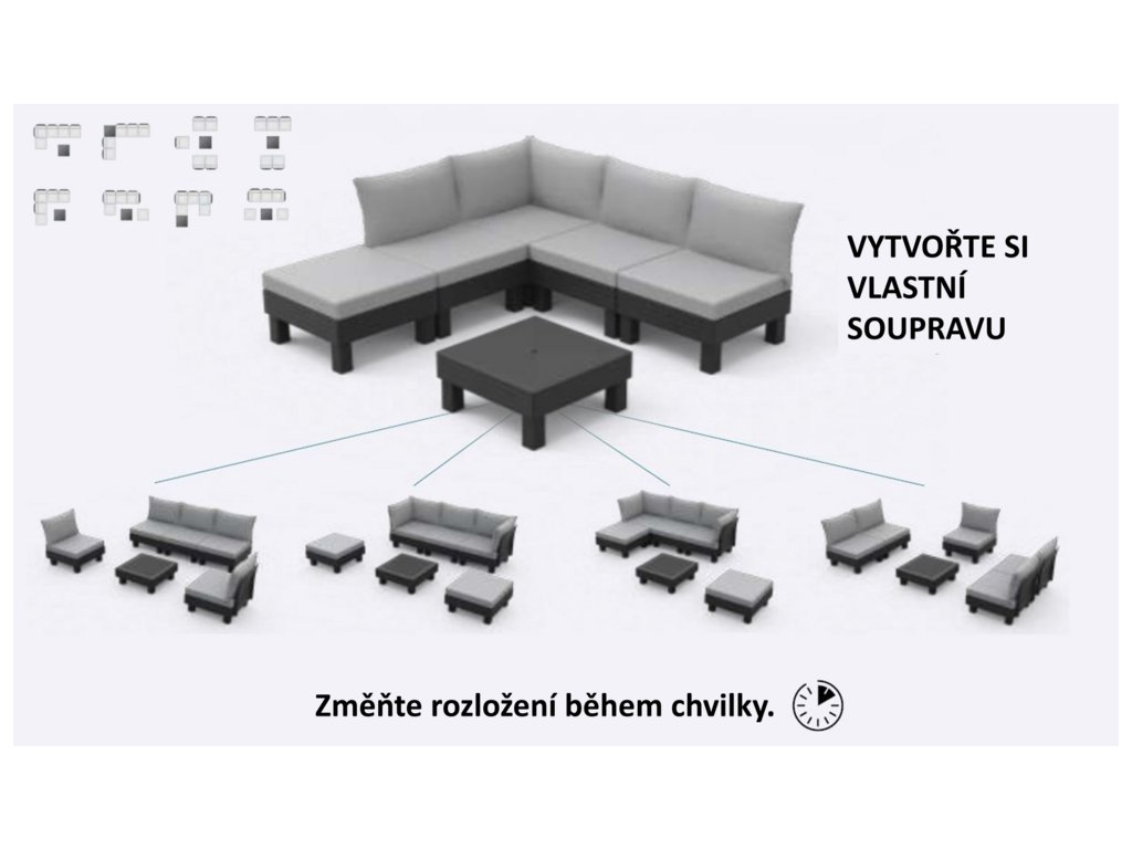 Set ELEMENTS Vám umožní uspořádat si moderní venkovní posezení dle Vašich představ. A když budete občas potřebovat více křesel místo sofa, nebo jiné uspořádání, není to pro set problém. Díky chytrému modulárnímu systému, který nabízí mnoho možných konfirgurací, jednoduše přemístíte a zacvaknete jednotlivé prvky na požadované místo.