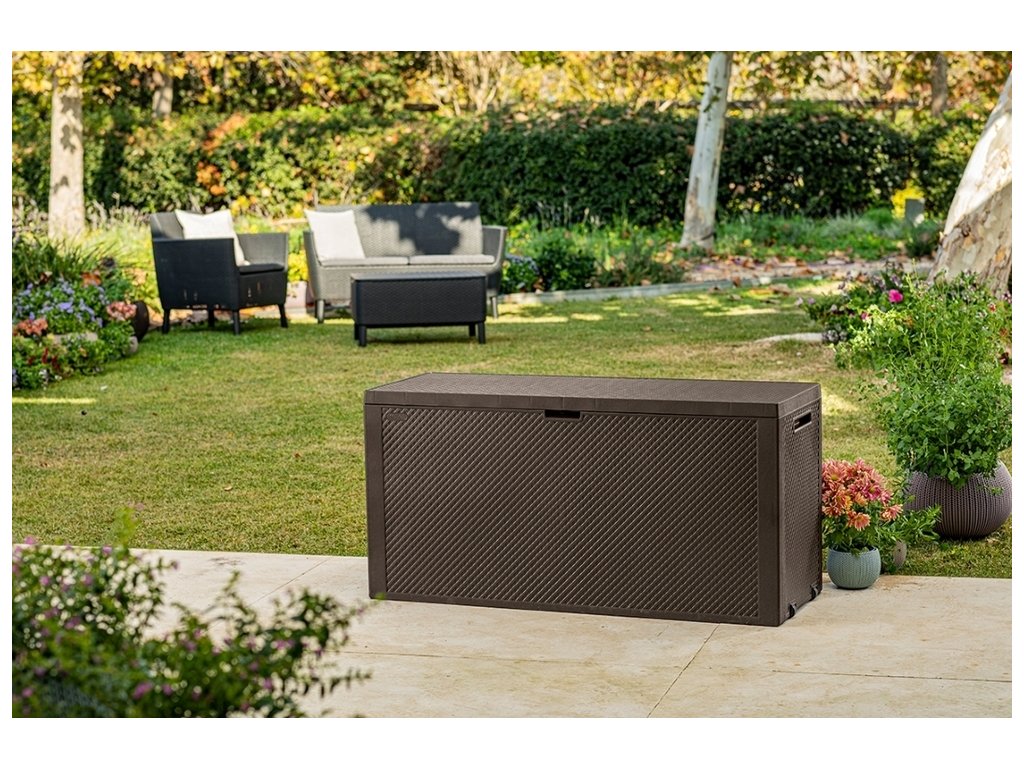Plastový box pro uložení nejrůznějších předmětů (podušky, zahradní náčiní...) od firmy KETER.