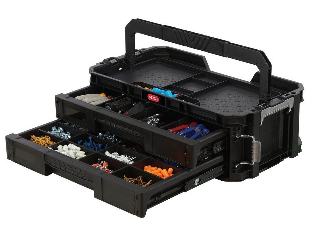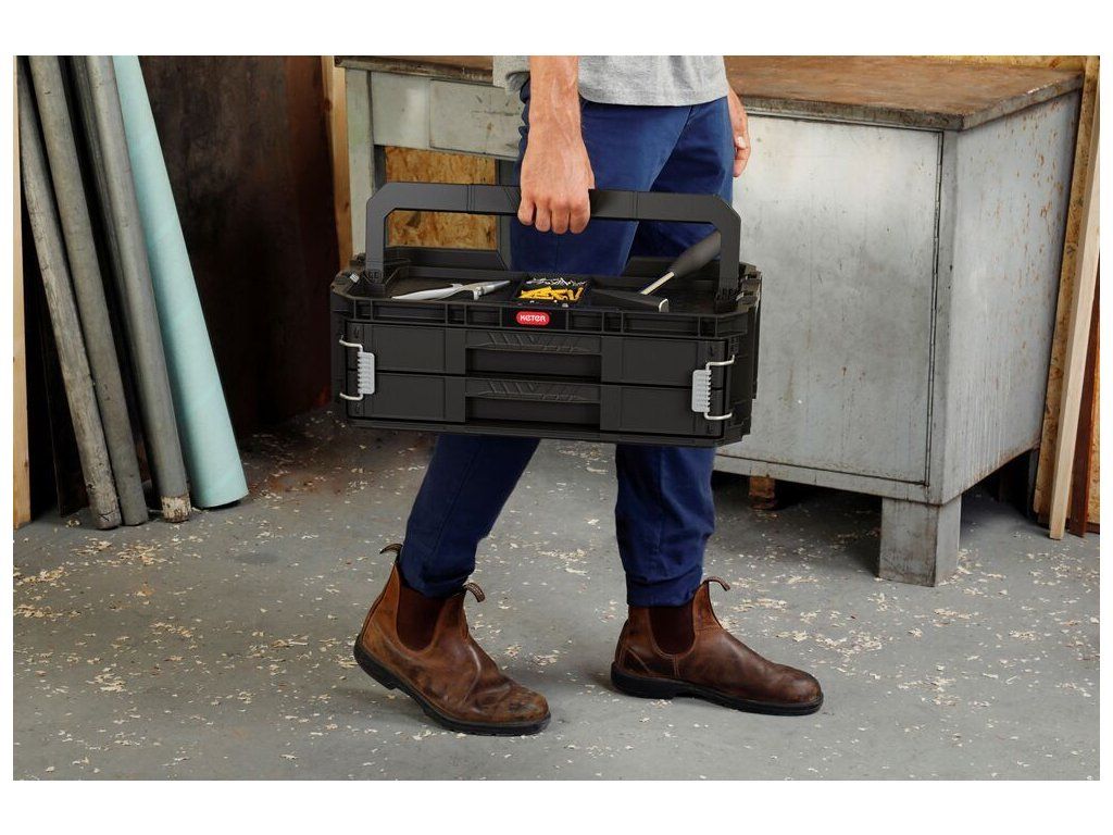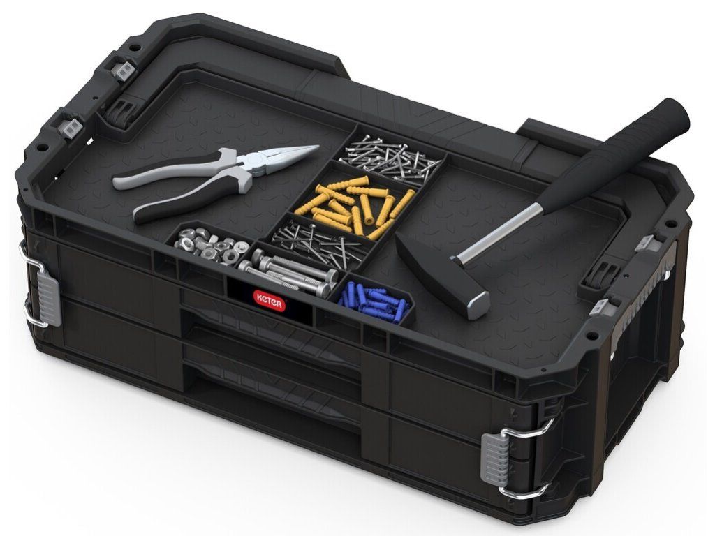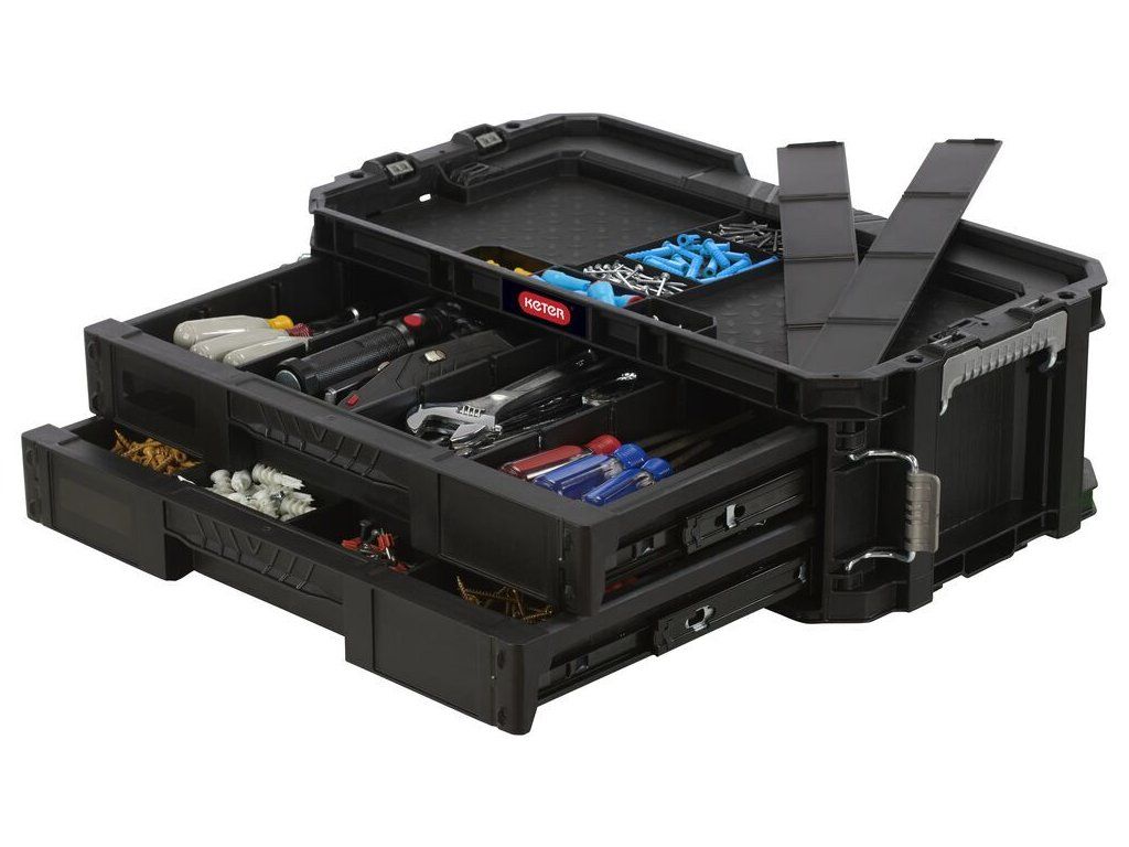 Connect se 2 zásuvkami udrží vaše nářadí vždy přehledné a uspořádané. Dvě výsuvné zásuvky pojmou ruční nářadí i drobné příslušenství, takže máte vše po ruce doma, v dílně i na cestách.