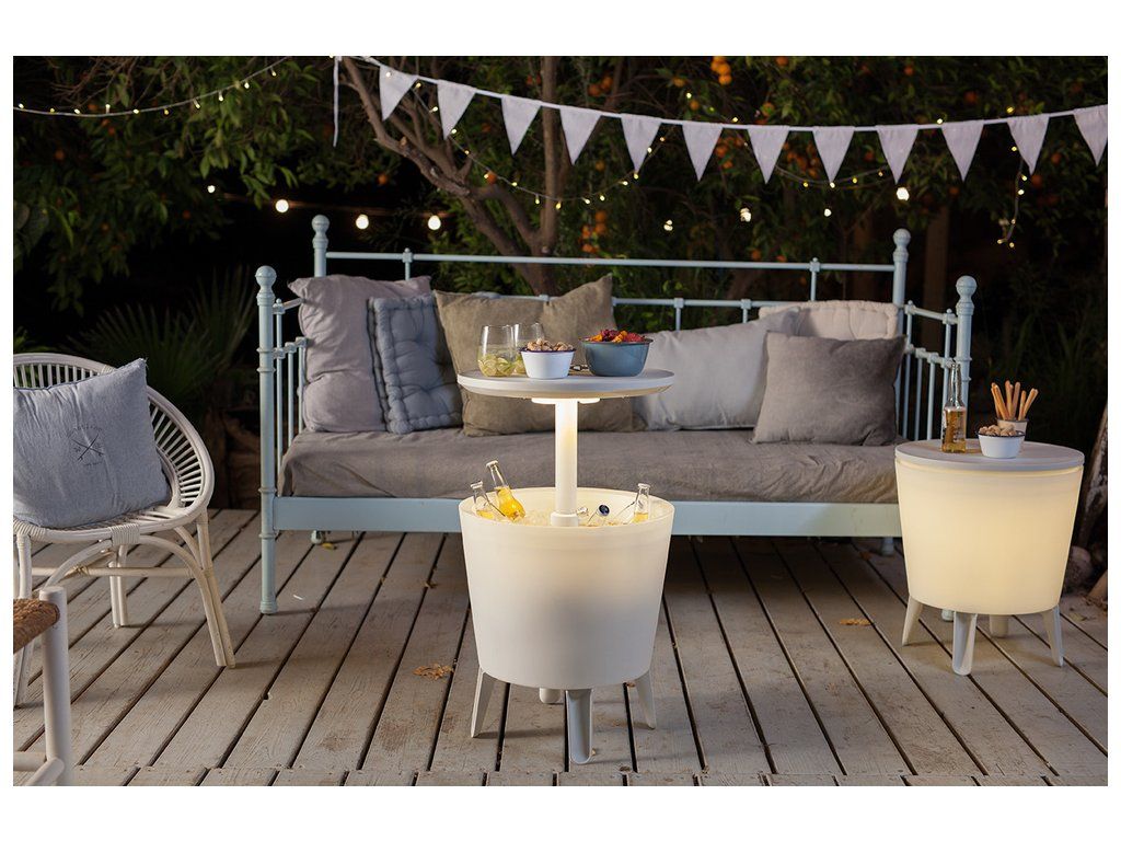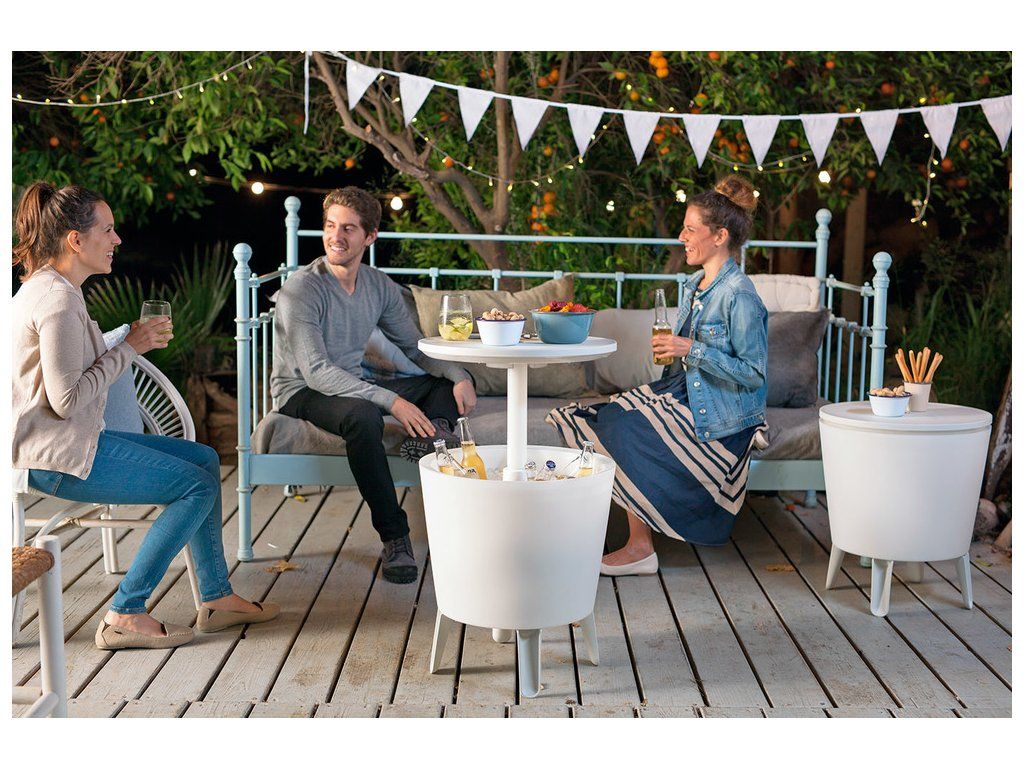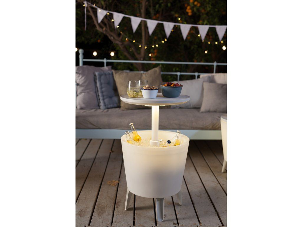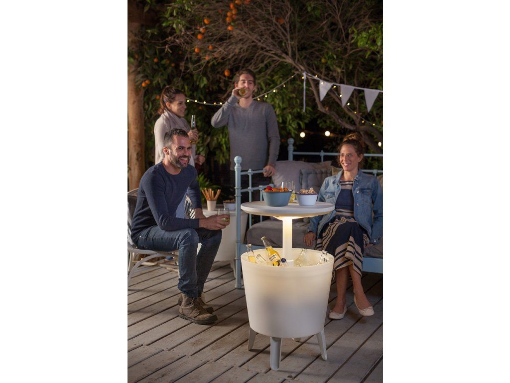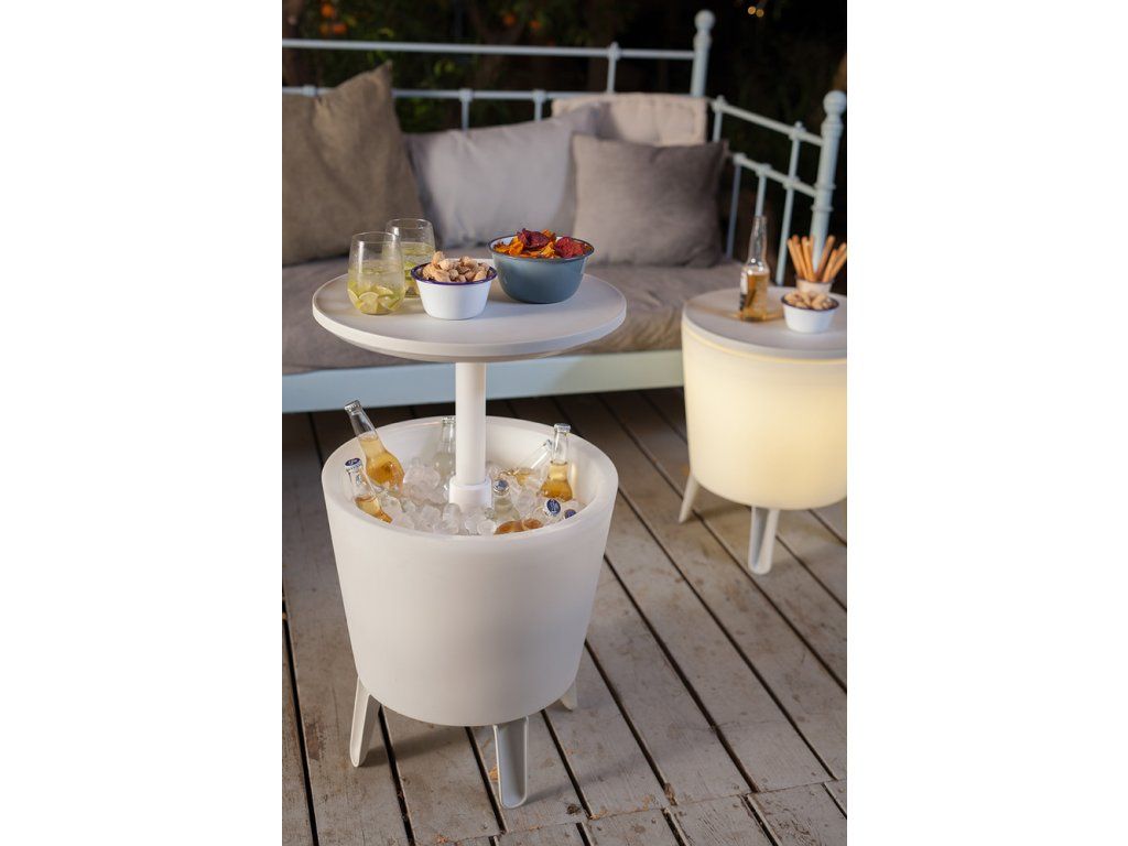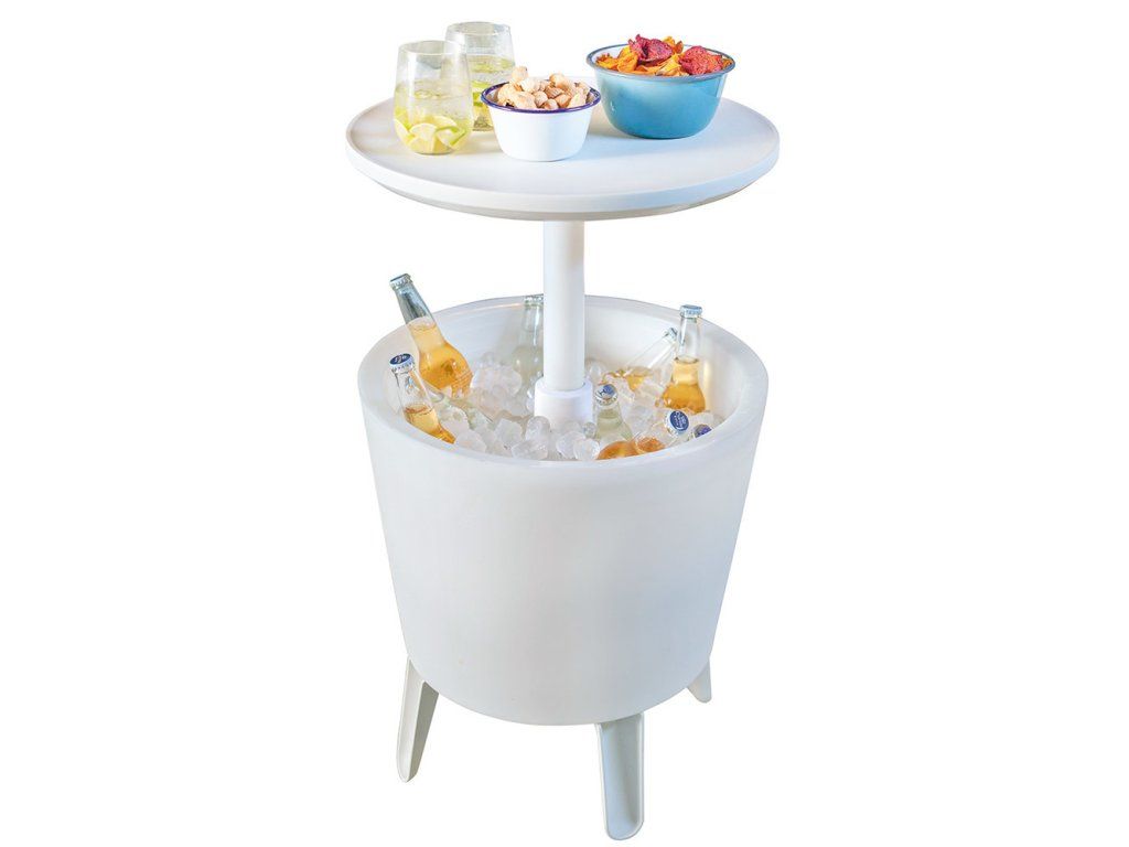 Multifunkční zahradní bar, který ve složeném stavu slouží jako praktický stůl a po vysunutí může sloužit jako klasický bar s boxem pro chlazení nápojů.