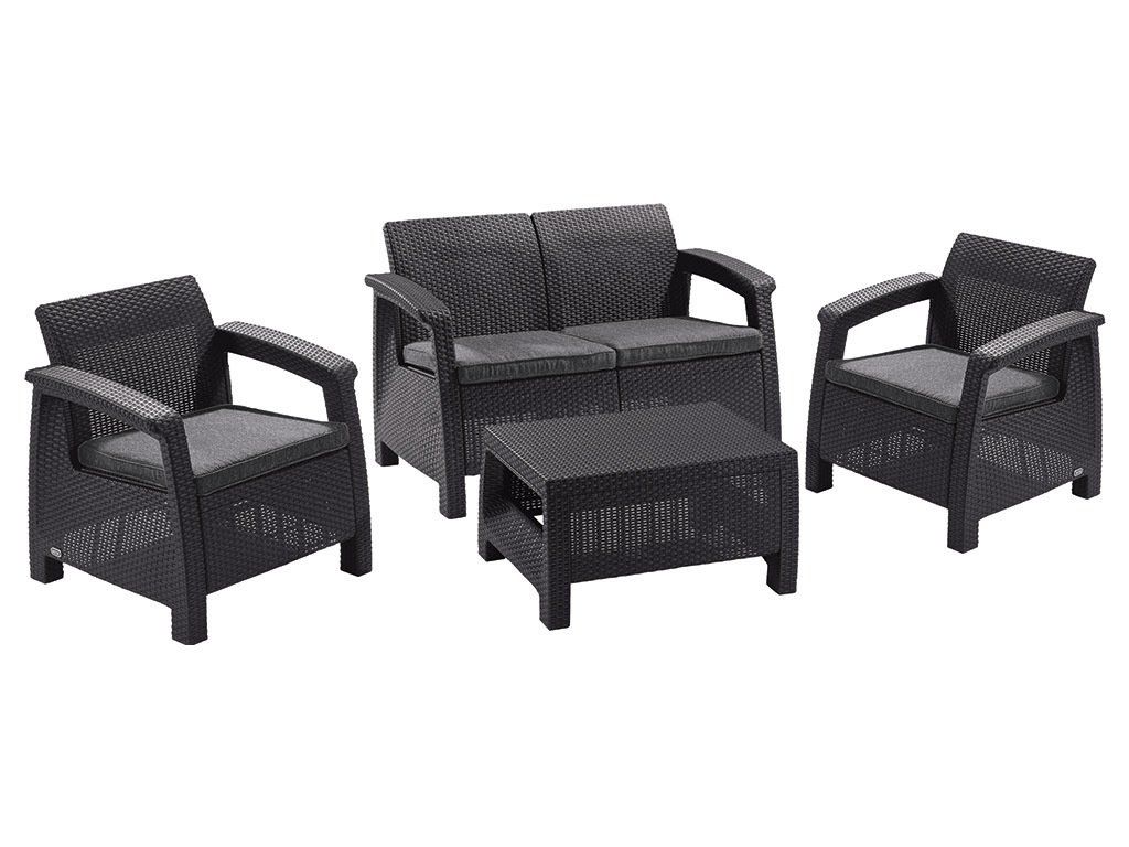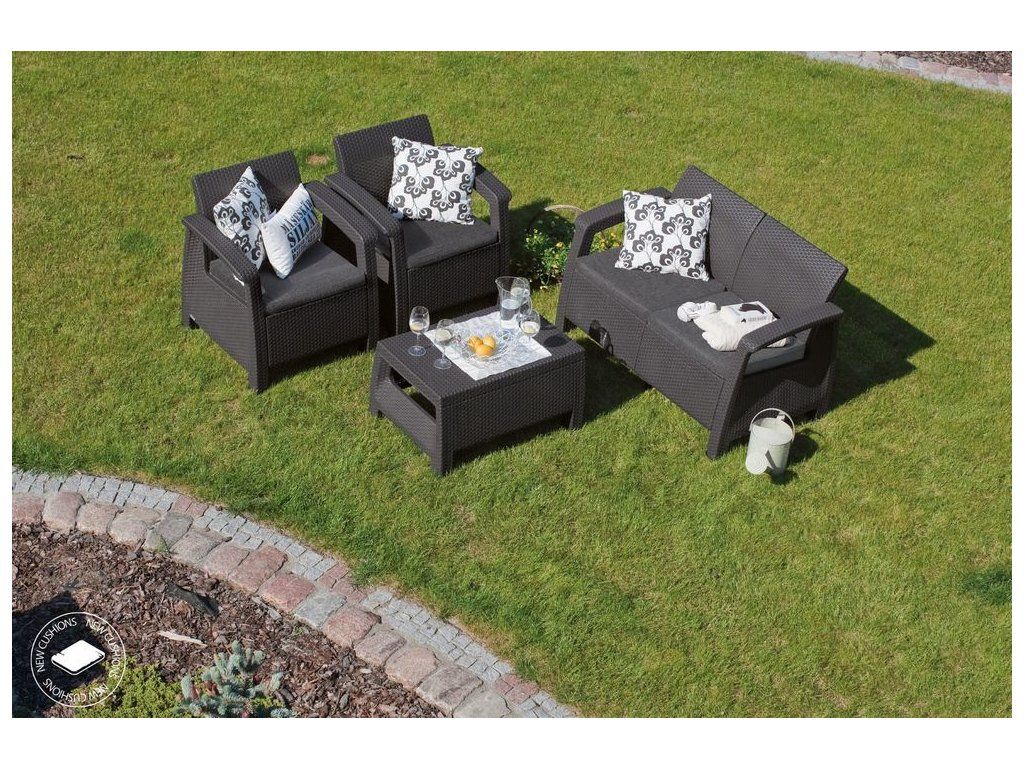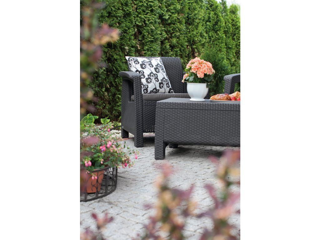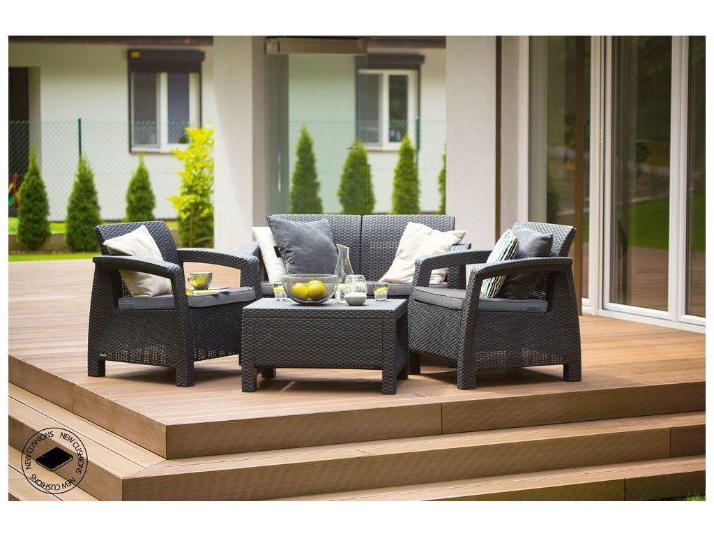 Souprava Corfu je pohodlné a moderní posezení jak do exteriéru, tak i do interiéru.