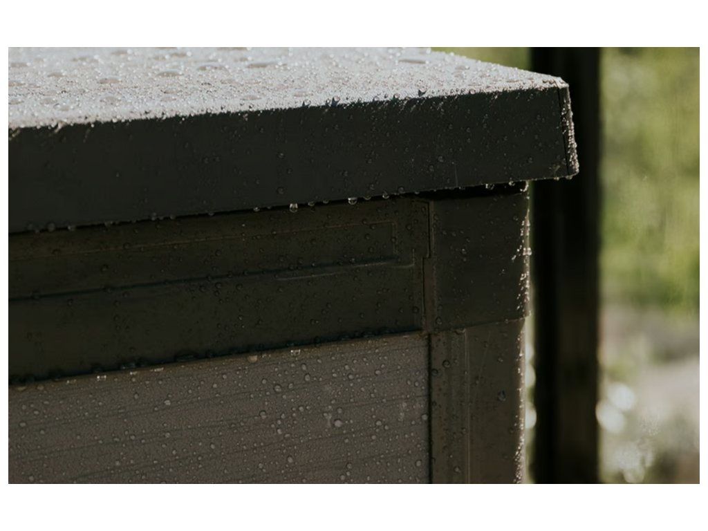 Box se vyznačuje jednoduchým a elegantním designem a také strukturou povrchu připomínající dřevo. Kvalitní kompozitní materiál EVOTECH i na dotek připomíná dřevo, ale je pevnější než samotné dřevo. Vysoce kvalitní plastové materiály zajišťují životnost výrobku po mnoho let.