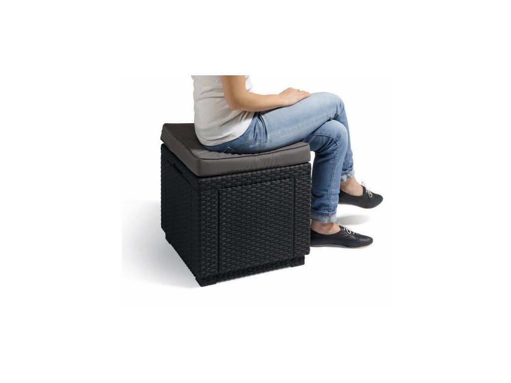 KETER CUBE taburet - grafit + šedá poduška