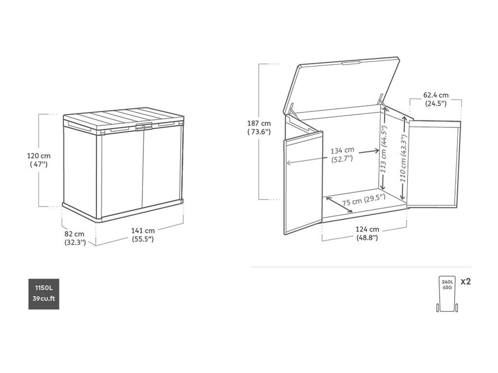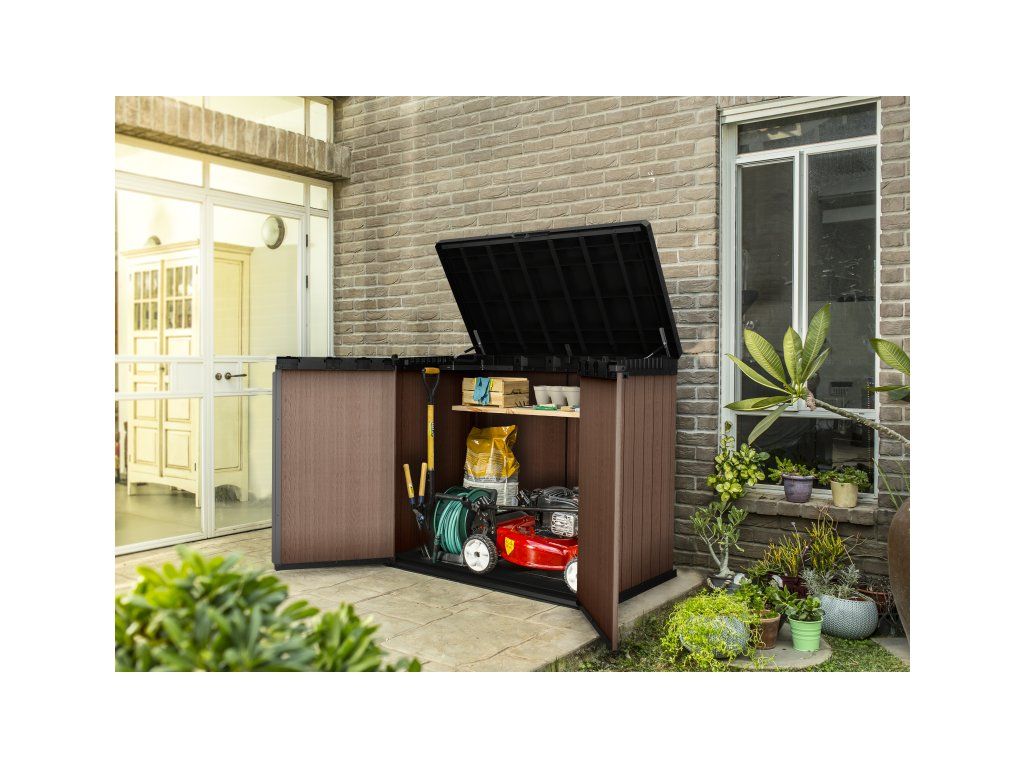 Skříňka DARWIN umožňuje pohodlně uložit vše, co chcete mít po ruce na Vaší zahradě. Ideální pro uschování zahradního nářadí, zahradních doplňků nebo sportovního vybavení. Je možné do ní také uschovat popelnice.