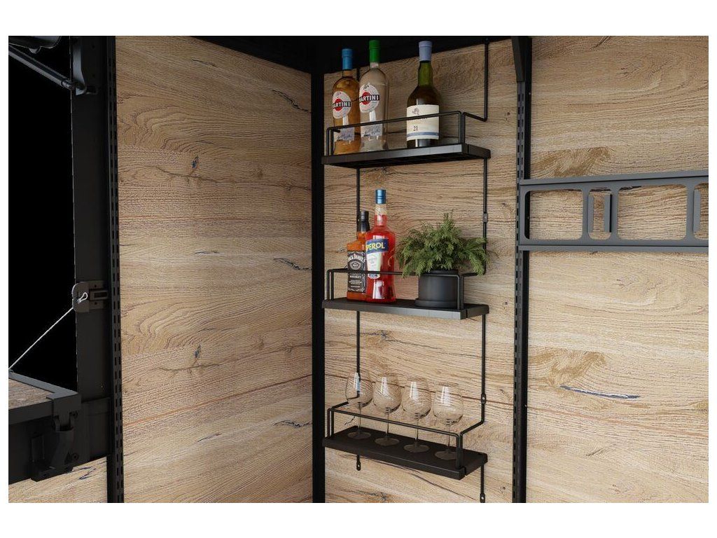 Na jedné straně nabízí stylový barový prostor ideální pro pořádání setkání. Součástí je elegantní pult pro servírování nápojů a prostor pro barové potřeby, což vytváří příjemnou atmosféru pro setkání a relaxaci.