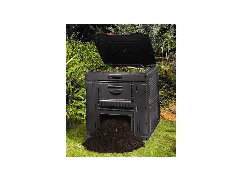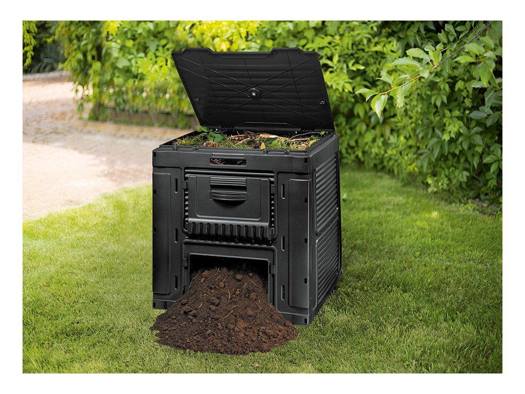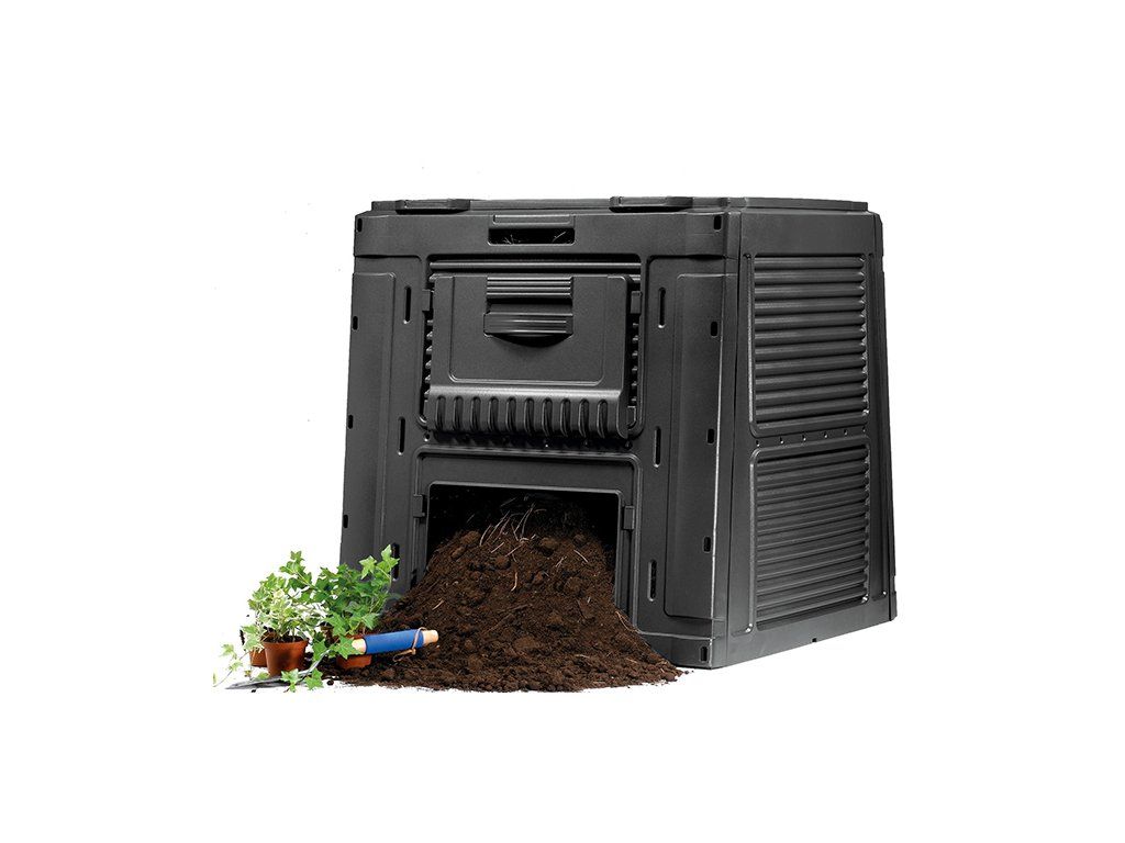 Plastový kompostér o obsahu 470L má speciální tvar zajišťující cirkulaci vzduchu a urychlující rozkladný proces.