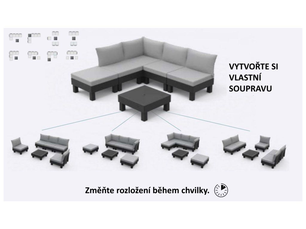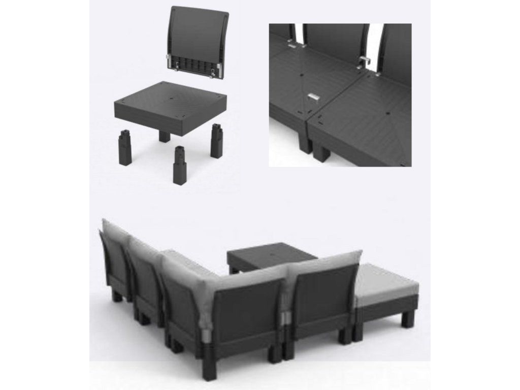 Set ELEMENTS Vám umožní uspořádat si moderní venkovní posezení dle Vašich představ. A když budete občas potřebovat více křesel místo sofa, nebo jiné uspořádání, není to pro set problém. Díky chytrému modulárnímu systému, který nabízí mnoho možných konfirgurací, jednoduše přemístíte a zacvaknete jednotlivé prvky na požadované místo.