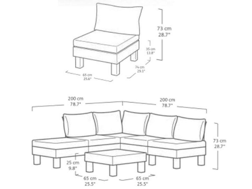 Pro ještě větší pohodlí jsou součástí soupravy 9 cm vysoké podušky a opěrky. Podušky jsou z příjemného materiálu polybavlna a spodní část je z netkané textílie s protiskluzovým tečkami. Pevný lisovaný plast, z kterého je souprava vyrobena, je odolný vůči nepříznivým povětrnostním podmínkám a UV záření.