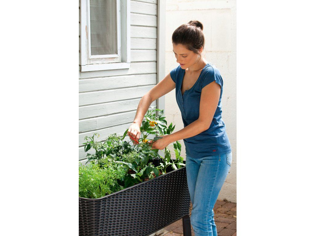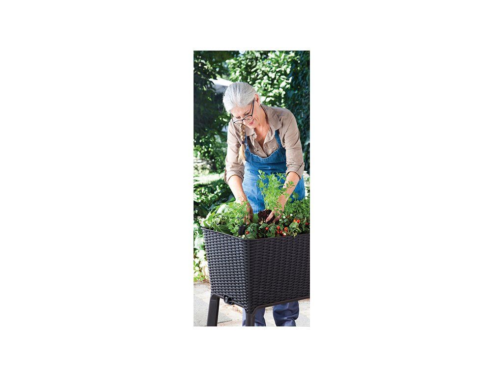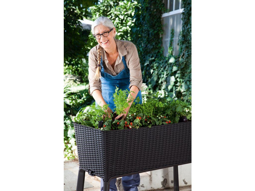 EASY GROW je vysoký květináč umístěn na pevných nohách.