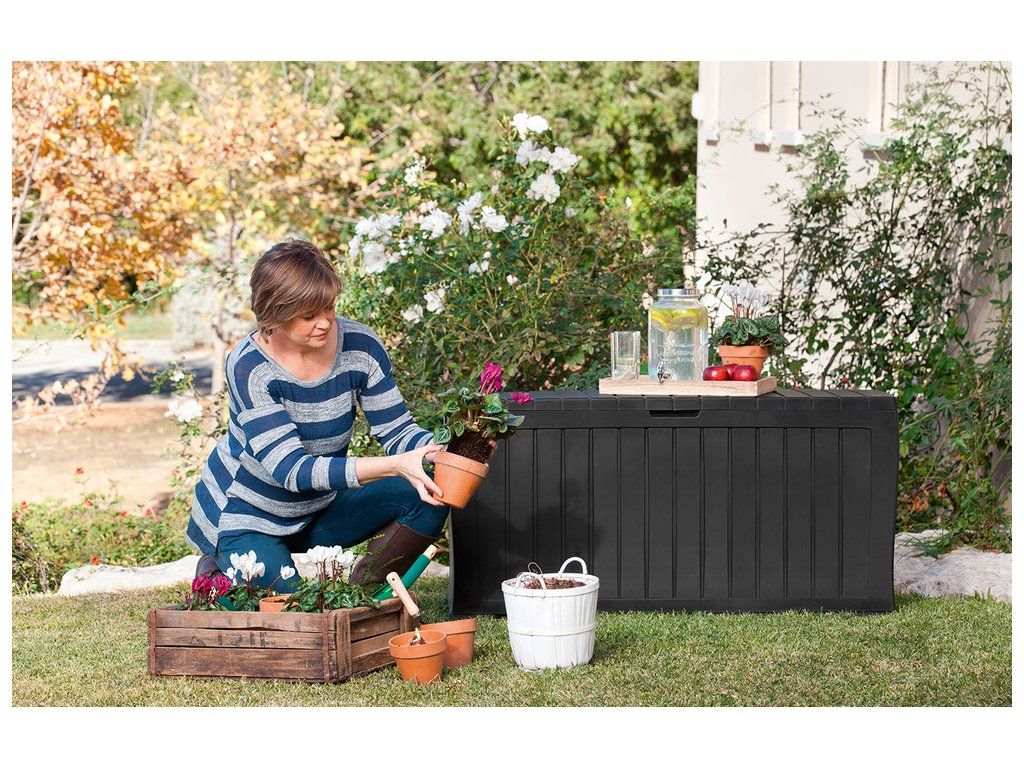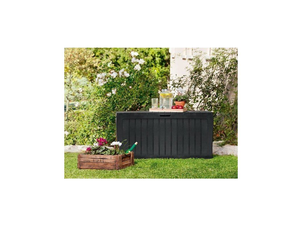 Plastový box pro uložení nejrůznějších předmětů (podušky, zahradní náčiní...) od firmy KETER.