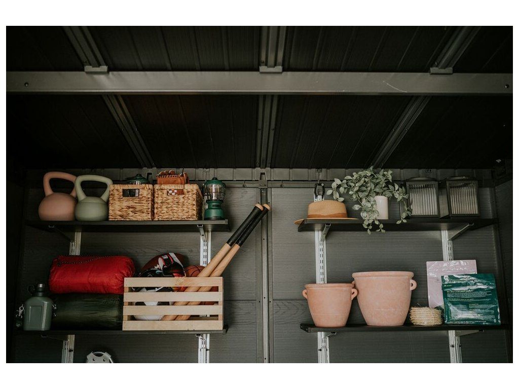 Domek je ideální nejen na uschovávání nářadí a zahradních doplňků, ale také na sekačku nebo grill.
