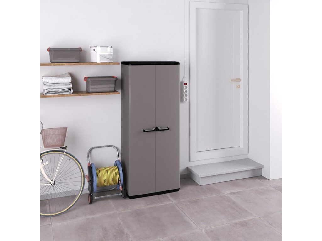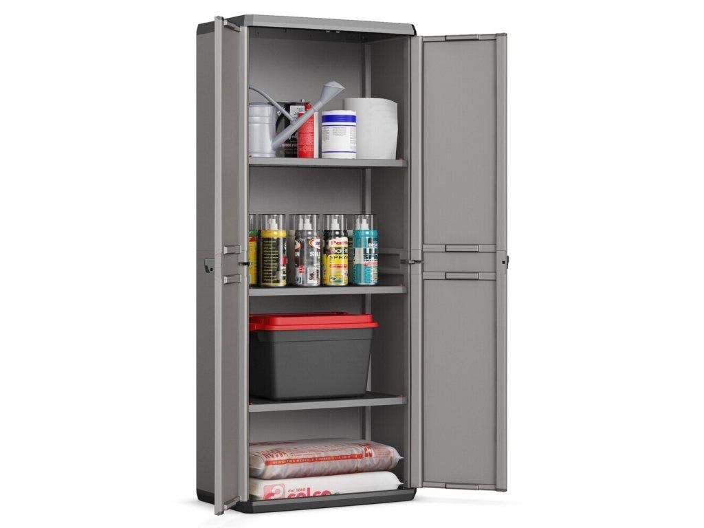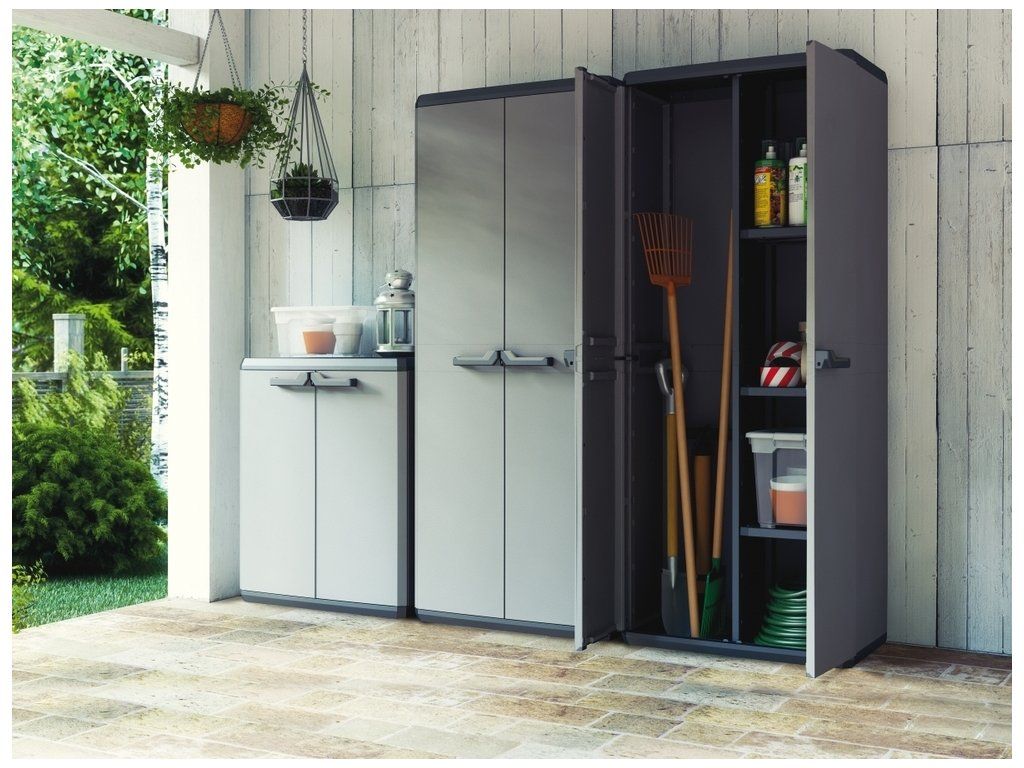 Pevné panty, možnost uzamčení a odolnost skříně patří mezí její přednosti. Díky praktickému designu zapadne téměř do každého prostoru a poskytne úkryt pro mnoho pomůcek, nářadí a vybavení.