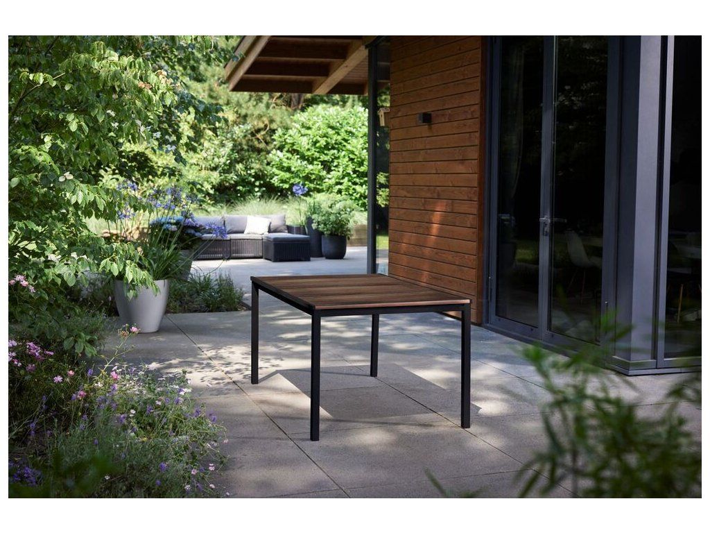 Vytvořte si pohodlné místo k posezení a užijte si čas strávený venku nebo doma s krásným a praktickým stolem PORTO s nádechem dřeva.