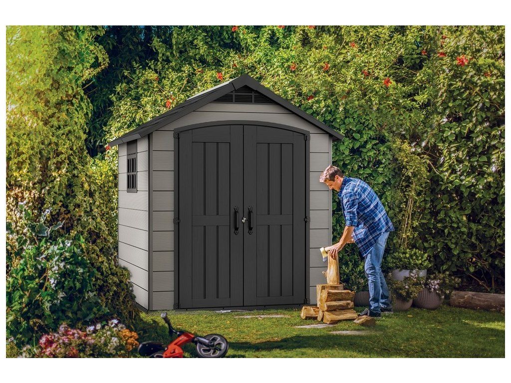 Domek je ideální nejen na uschovávání nářadí a zahradních doplňků, ale také na sekačku nebo grill.