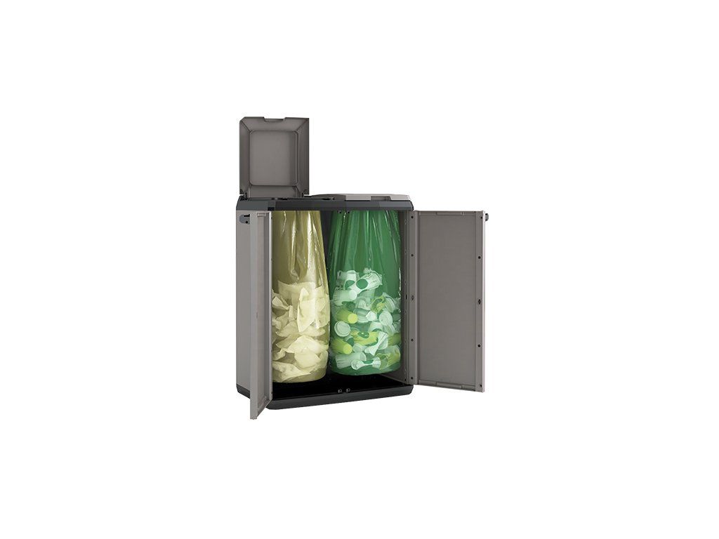 Recyklační koš na třídění odpadu s horním otvíráním pro vhazování odpadků.