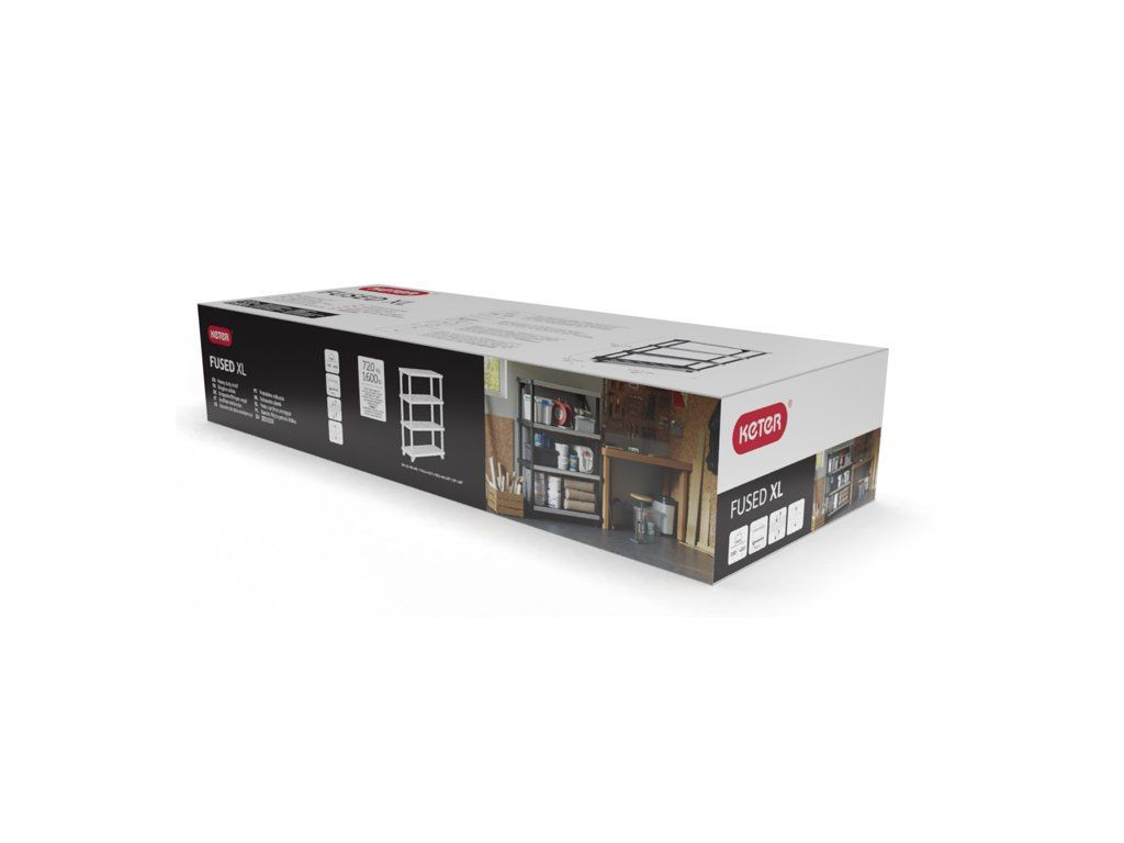 Extra pevný regál FUSED s kovovou výztuhou polic od značky KETER.