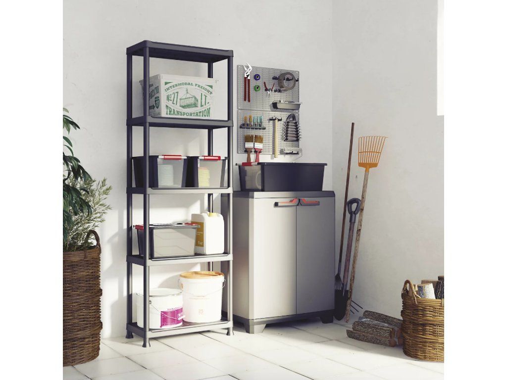 Regál PLUS s 5 policemi je ideálním řešením pro úklid a organizaci vaší garáže, sklepa nebo půdy. Tento regál se vyznačuje pevnou a odolnou konstrukcí a díky zvýšeným nohám pomáhá udržet uložené věci mimo podlahu.