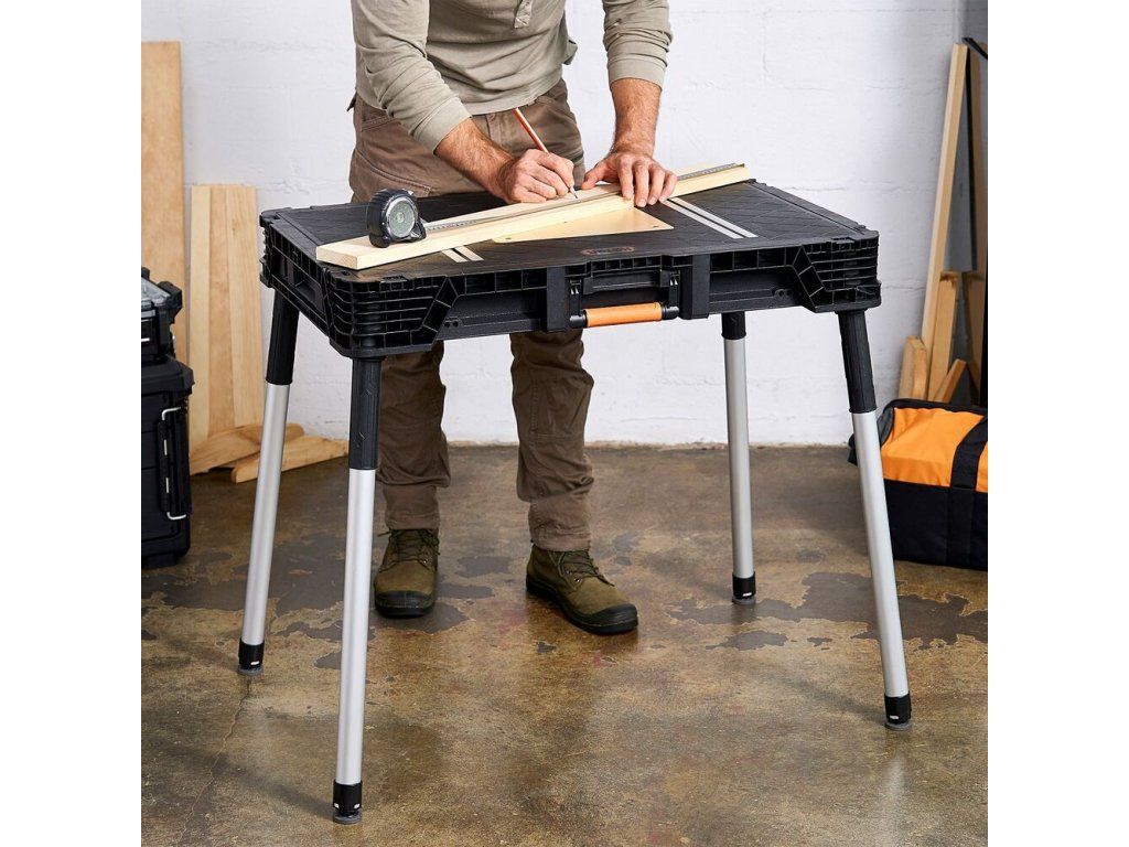 Tento robustní stůl unese až 450 kg, takže je ideální pro dílenské i montážní práce. Zároveň je však jeho konstrukce navržena tak, aby byl stůl dostatečně lehký a snadno přemýstitelný - můžete ho bez problému přenést tam, kde ho zrovna potřebujete, a po práci jednoduše složit a uložit.