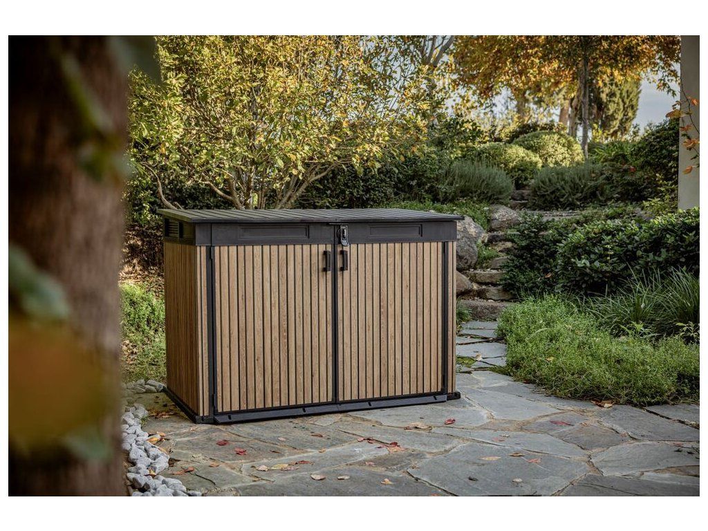Skříň SIGNATURE 2 020 l od značky Keter nabízí elegantní a praktické řešení pro uložení popelnic, ale i dalšího zahradního náčiní.
