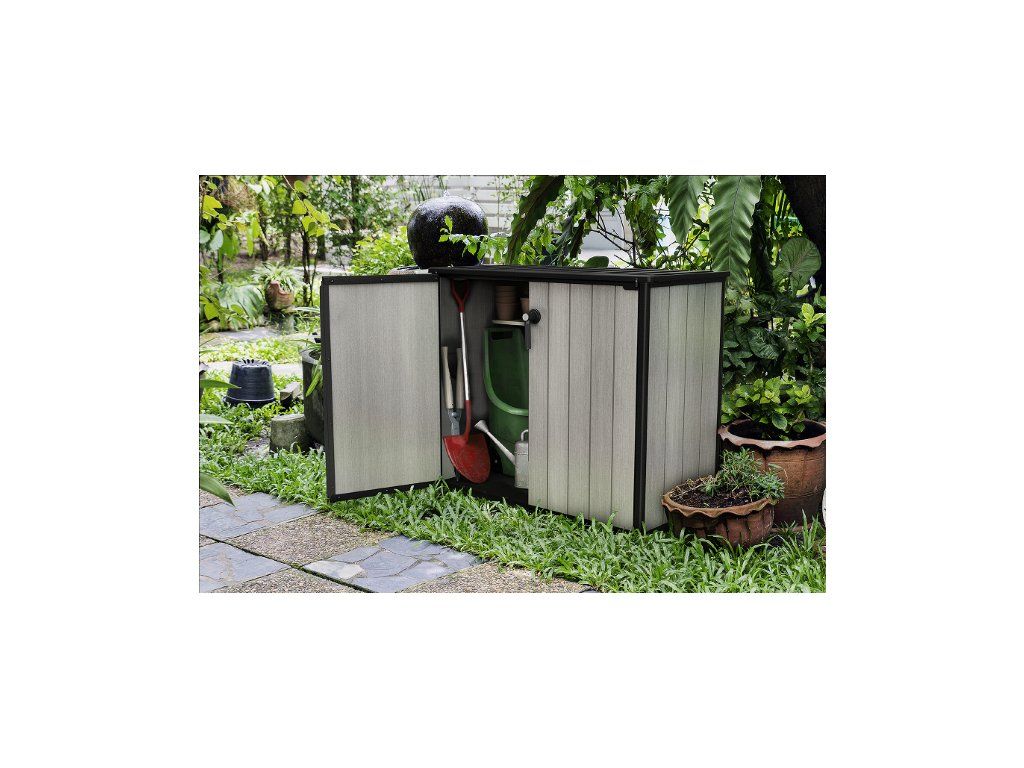 Prostorná TOOL STORE skříň je dostatečně velká pro uložení mnoha nářadí a příslušenství, které jsou potřebné pro práci na zahradě.