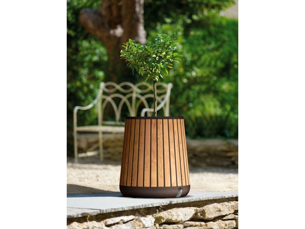Vyrobený pomocí patentované technologie Decocoat z pevného plastu, která zajišťuje nejen elegantní vzhled, ale i mimořádnou odolnost. Povrch květináče dokonale imituje dřevo a přitom odolá všem povětrnostním vlivům – užijete si jej bez nutnosti údržby či výměny.