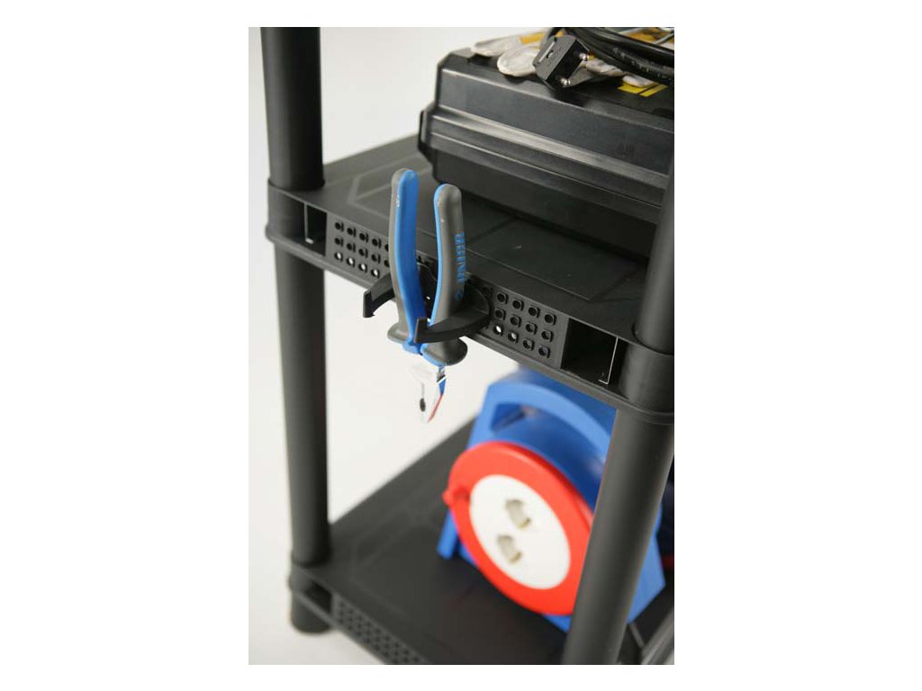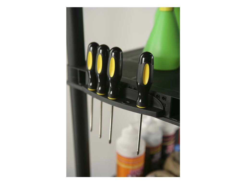 - široké police umožňují uskladňovat i rozměrné nářadí, skládací židle, vysavač apod.