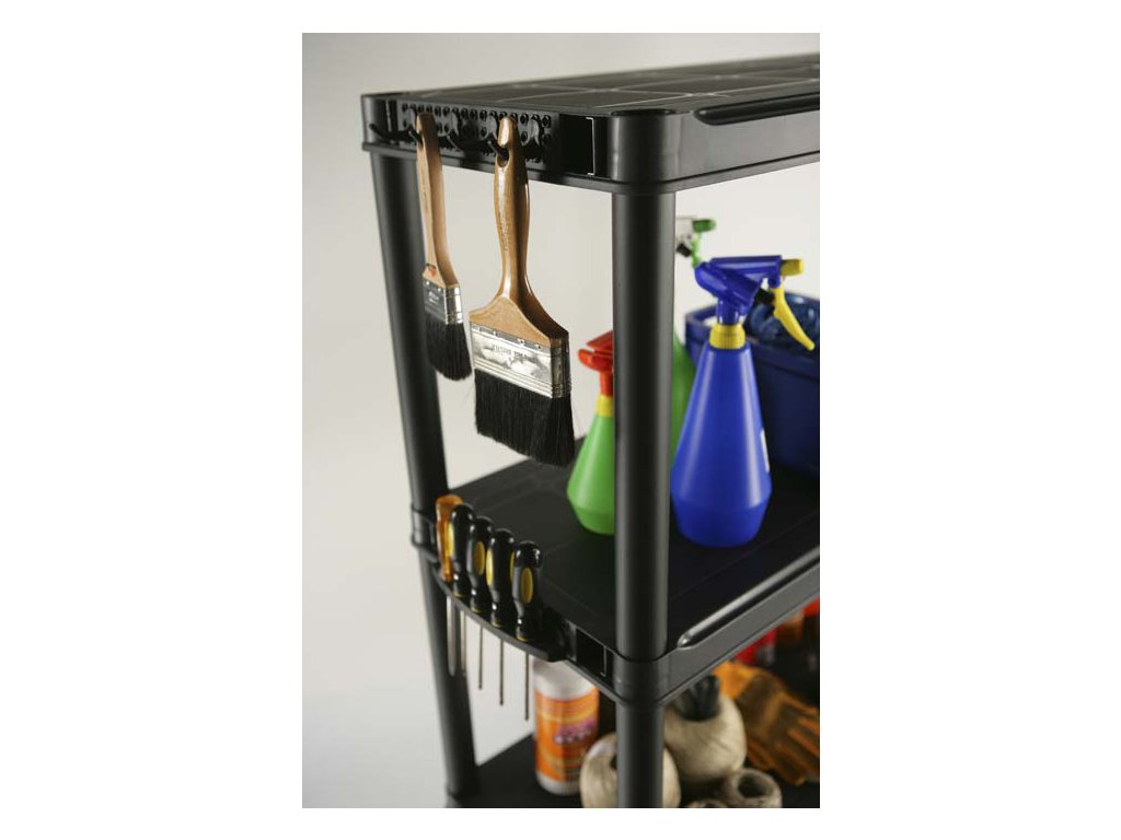 Plastový regál široký 120 cm je velmi vhodný do skladu nebo garáže, ideální na těžké nářadí.