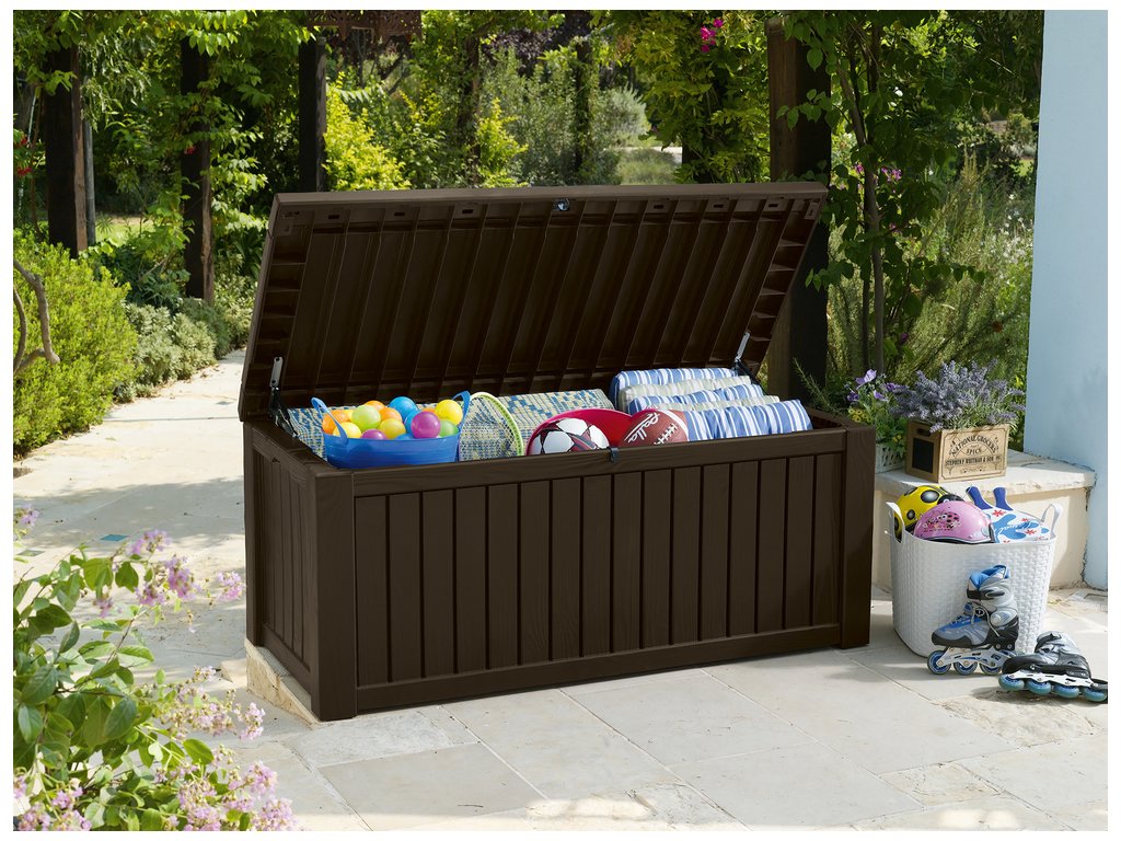 Odkládací box umožňuje pohodlně uložit vše, co chcete mít po ruce na Vaší zahradě.