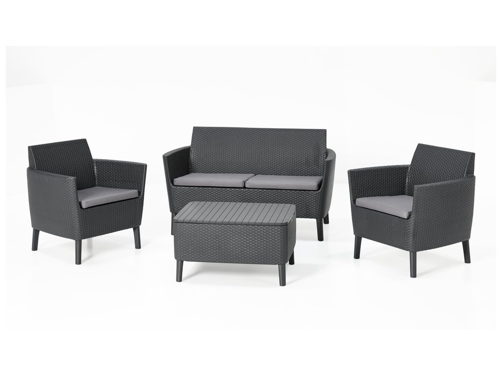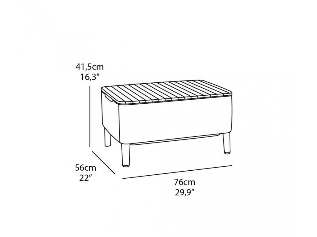 Jedná se o elegantní stůl v imitaci ratanu, který navíc slouží jako úložný box.