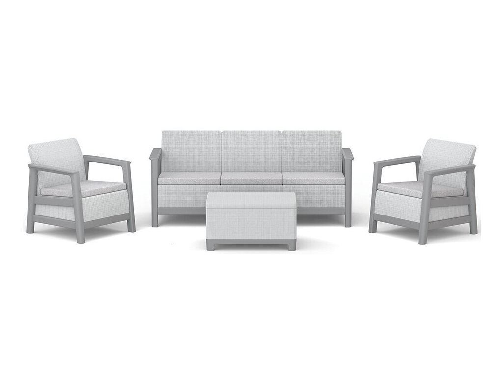 Velkou výhodou je rychlá montáž bez použití nářadí, díky které je sada připravena k použití během několika minut. Součástí setu jsou dvě pohodlná křesla, trojmístné sofa a praktický stolek s úložným prostorem, ideální pro uložení drobností, polštářků nebo zahradních doplňků.