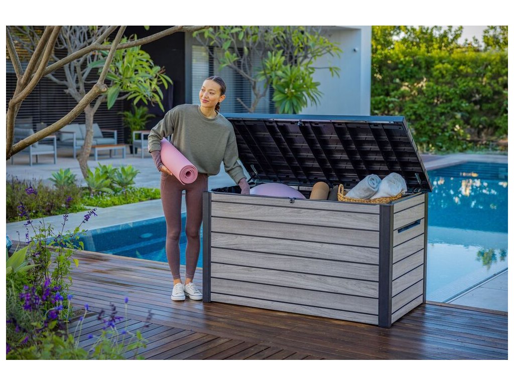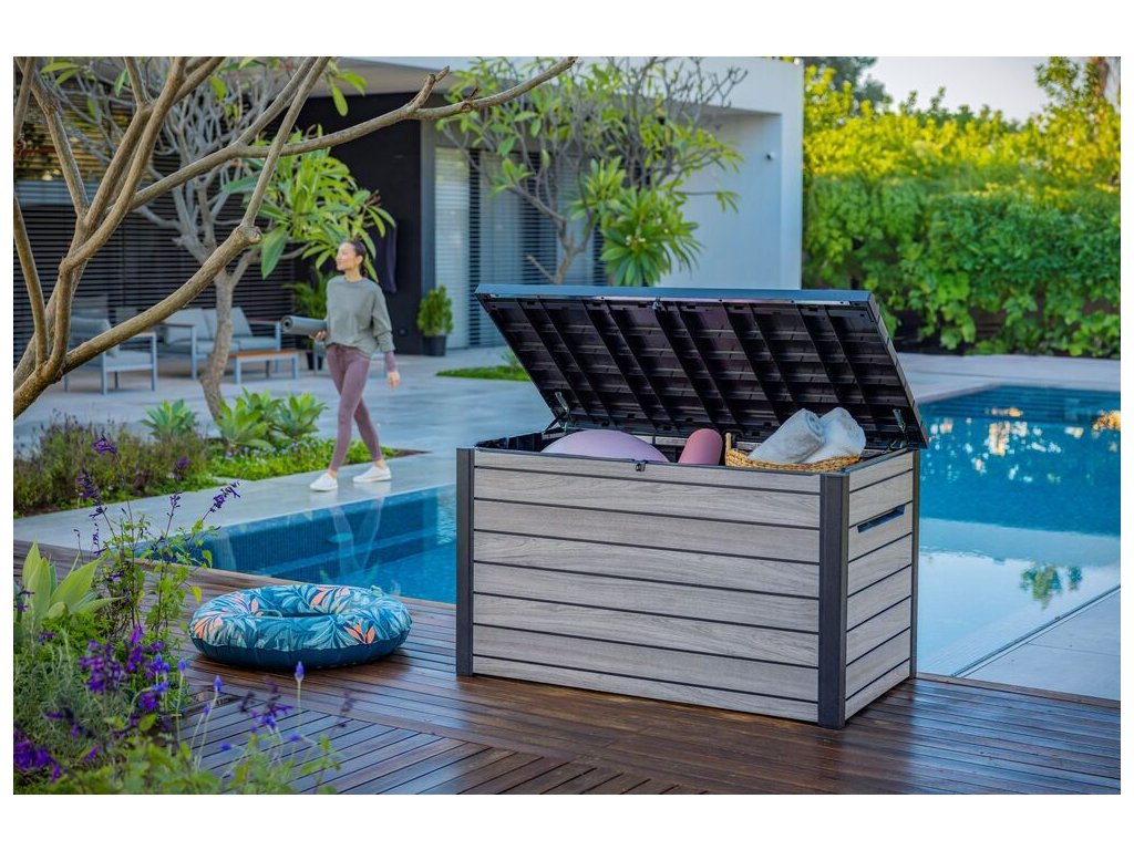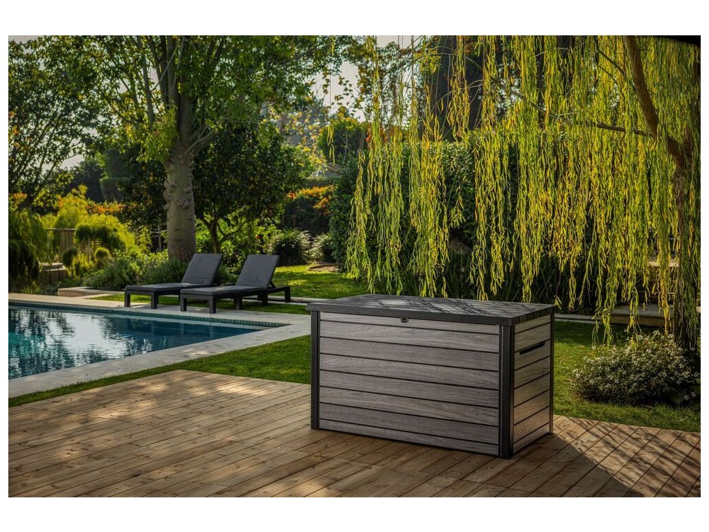 Úložný box SIGNATURE HORIZONTAL 870 L - STORM GREY od značky Keter přináší spojení stylu, funkčnosti a kvality pro dlouhodobé využití na Vaší zahradě.