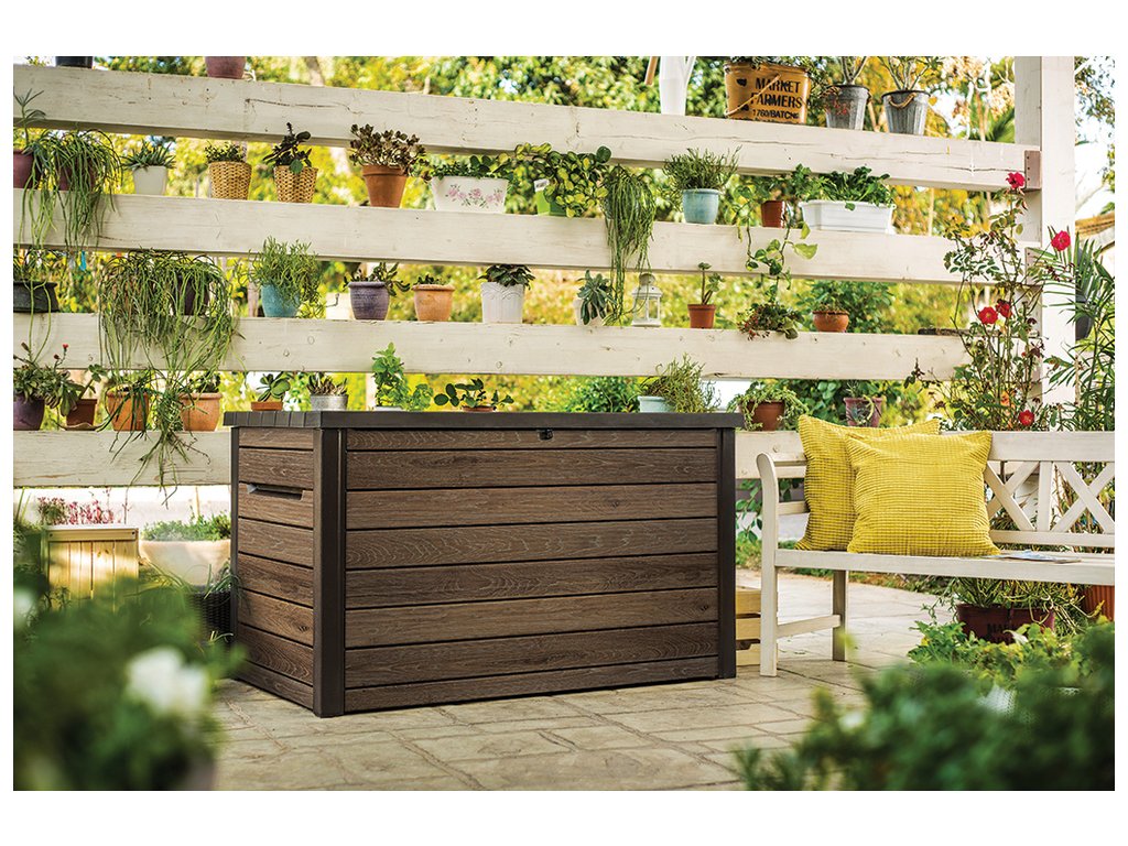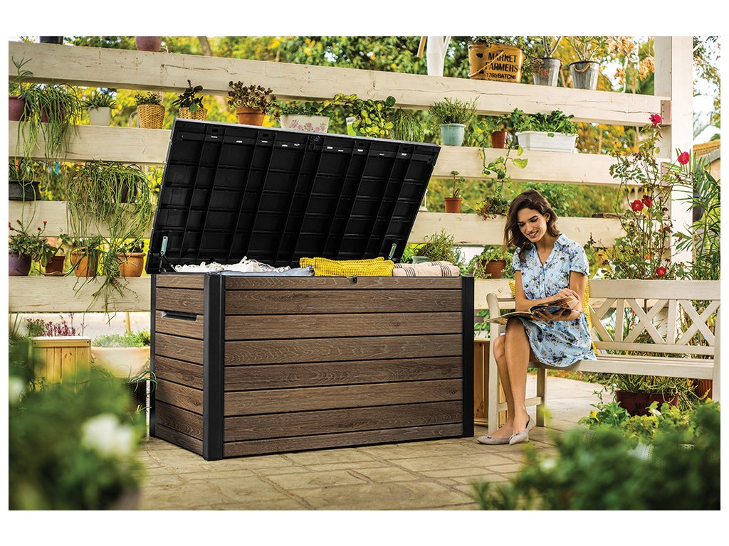 Úložný box SIGNATURE HORIZONTAL 870 L - WALNUT od značky Keter přináší spojení stylu, funkčnosti a kvality pro dlouhodobé využití na Vaší zahradě.