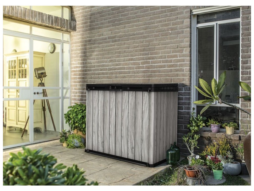 Designová, plastová skříň z řady DECO HORIZONTAL STORE IT OUT v provedení STORM GREY disponuje úložným prostorem o objemu 1 150 L.