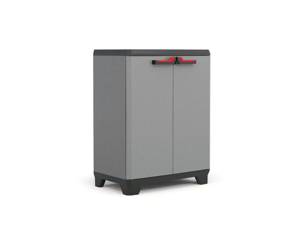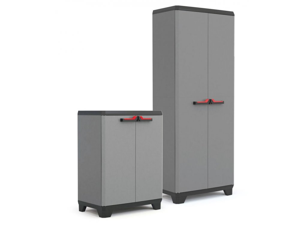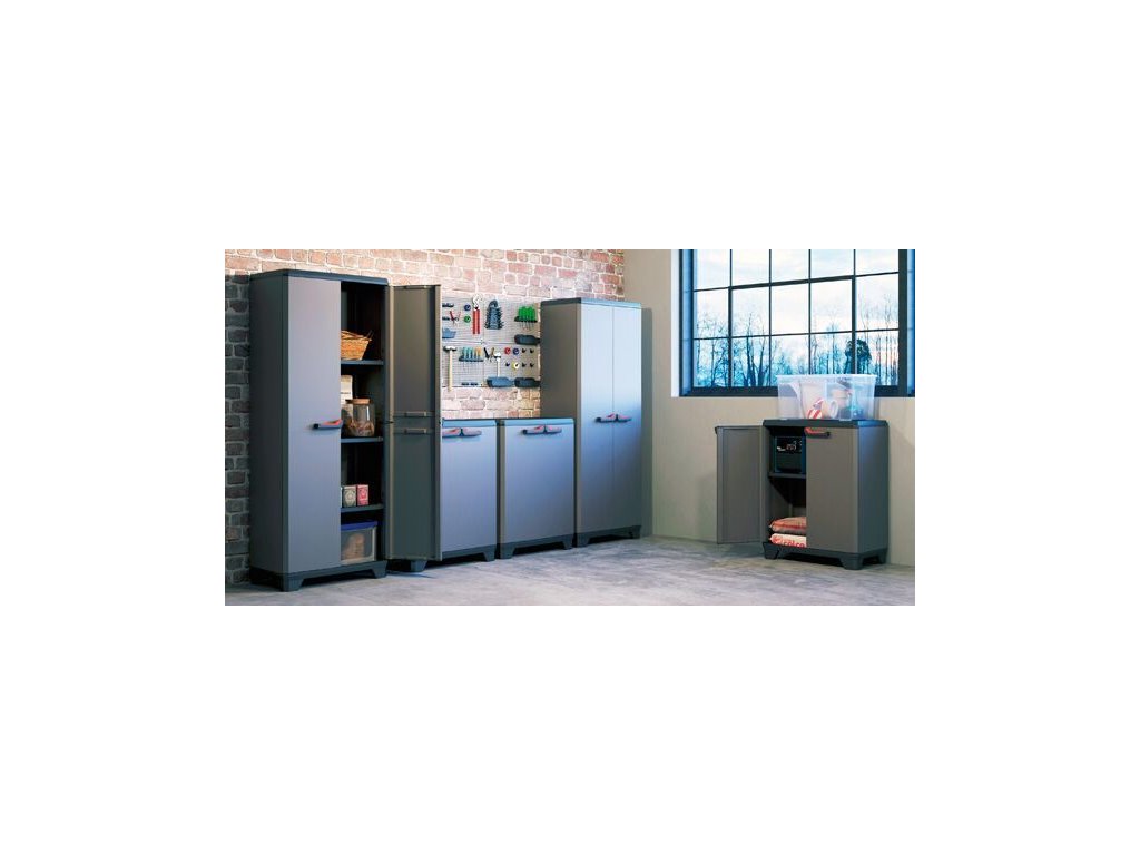 Menší plastová skříň s nosností 15 kg na polici se ideálně hodí pro umístění v dílnách, šatnách, verandách nebo v garážích.