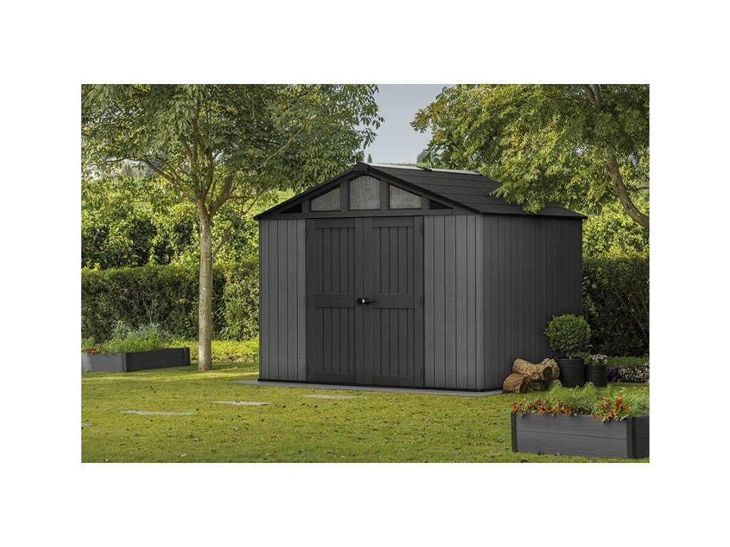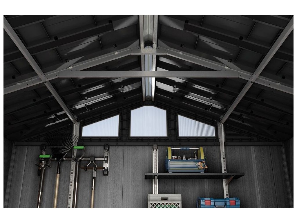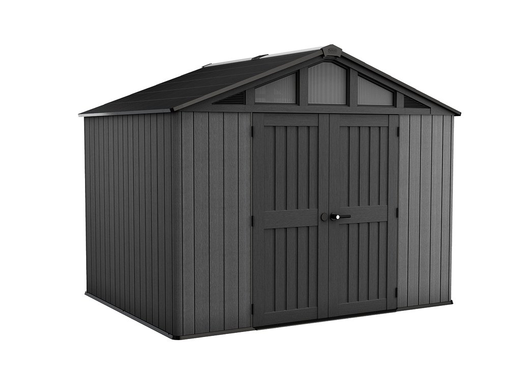 Vítejte v nové éře zahradních úložných řešení s naším extra velkým, bezúdržbovým domkem STRONGHOLD 10x8. Navržen s ohledem na Vaše potřeby a estetiku, tento robustní plastový zahradní dům je vyroben z prvotřídního složení pryskyřic, které zajišťuje maximální odolnost vůči nepříznivým povětrnostním podmínkám.